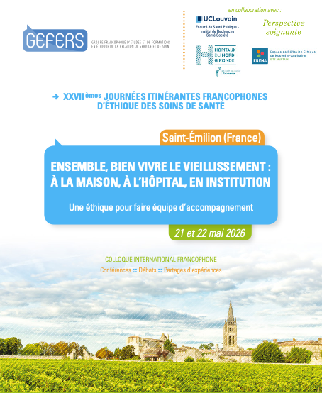 Dans le cadre des XVIIIes Journées Itinérantes Francophones d’éthique des Soins de Santé (JIFESS), le GEFERS organise un 5e Colloque international francophone centré sur les questions éthiques que soulèvent la pédagogie au sein des différentes structures de formation aux métiers de la santé ainsi que le déroulement des stages dans les milieux professionnels.